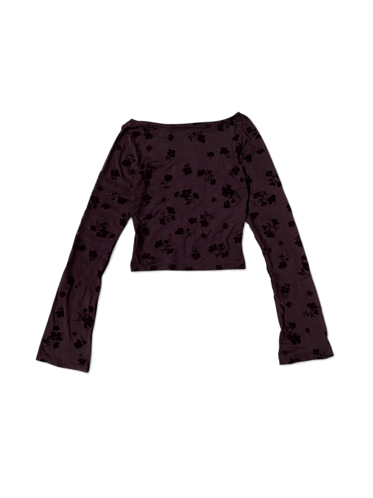 Camiseta de microtul con estampa de flores de terciopelo, cuello bote y manga semi campana